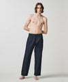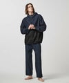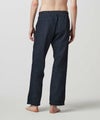 (インディゴ)坂本デニムのエコ染色によるもので、日本ならではの奥深さのあるネイビーカラーを楽しめます。経緯はオーガニックコットン、経糸は坂本デニムのエコ染色によるロープ染色のピュアインディゴで染めた糸を使用し、独特のムラ感がある三綾デニムを使用。柔らかな素材で肌離れも良く、春夏シーズンも快適に履くことができます。