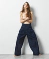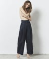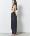 セルビッチデニムの耳をデザインに取り込む際に、セルビッチと分かるようなさりげない使い方ではなく、「視覚的に強いデザイン部分が耳だった」という使い方になるように考えました。 またジーンズ特有のディテールをある程度残したまま、デニムの素材感を活かした特徴あるシルエットを作りたかったので、ポケット口にタックを取り、通常のタックトラウザーとは違うシルエットになるようにしました。