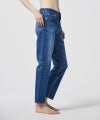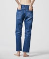 すっきりとした程よい細さのスリムストレート。ウエストからヒップにかけて身体に沿い、太ももから裾にかけてゆとりをもたせることで、脚本来の凹凸感を感じさせずレッグラインを美しく包み込むシルエット。10.5ozのデニム生地は肉感を拾いづらく、適度なハリ感がありながらも滑らかな履き心地。