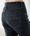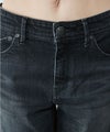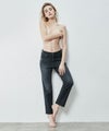 ウエストからヒップにかけて身体に沿い、太ももから下はゆとりをもたせたストレート。 裾にかけて少しだけ細くしているため、脚をきれいに見せてくれます。股上は少し深めのミッドライズ。 カジュアルにもキレイめにも合わせやすいのも魅力。 タテ落ちがしっかり出る本格デニムの見た目ながら、しっかりストレッチが効いていて穿き心地も抜群です。