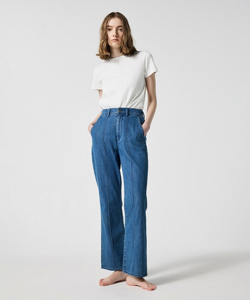 【デザイン】 ヤヌークで人気だったフレアシルエットを復刻。ドローコード入りで、イージーな履き心地が魅力です。