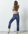 ウエストからヒップにかけて身体に沿い、太ももから下はゆとりをもたせたストレート。 裾にかけて少しだけ細くしているため、脚をきれいに見せてくれます。股上は少し深めのミッドライズ。 カジュアルにもキレイめにも合わせやすいのも魅力。 タテ落ちがしっかり出る本格デニムの見た目ながら、しっかりストレッチが効いていて穿き心地も抜群です。