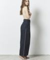 セルビッチデニムの耳をデザインに取り込む際に、セルビッチと分かるようなさりげない使い方ではなく、「視覚的に強いデザイン部分が耳だった」という使い方になるように考えました。 またジーンズ特有のディテールをある程度残したまま、デニムの素材感を活かした特徴あるシルエットを作りたかったので、ポケット口にタックを取り、通常のタックトラウザーとは違うシルエットになるようにしました。