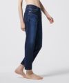 すっきりとした程よい細さのスリムストレート。ウエストからヒップにかけて身体に沿い、太ももから裾にかけてゆとりをもたせることで、脚本来の凹凸感を感じさせずレッグラインを美しく包み込むシルエット。10.5ozのデニム生地は肉感を拾いづらく、適度なハリ感がありながらも滑らかな履き心地。