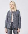 オーバーサイズのクルーネックGジャン。 フロントのプリーツが特徴的なデザイン。10ozのストレッチデニムを使用し、見た目以上にソフトな着心地。袖・アームホールを大きめにすることで抜け感を出せるアイテムです。フラップポケット位置も高めに設定し、スタイルアップにこだわりました。