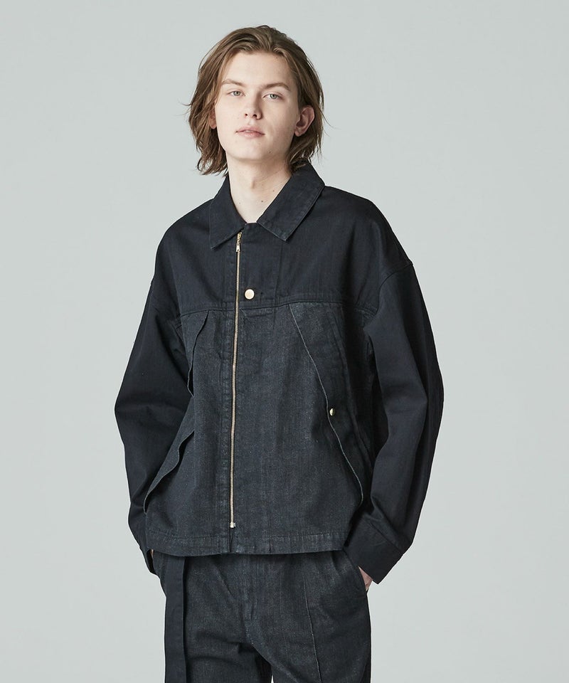 フロントのZIP使いや胸のワンポイントのゴールドボタンにマウンテンパーカーのディテールを盛り込んだデザイン性の高いデニムジャケット。