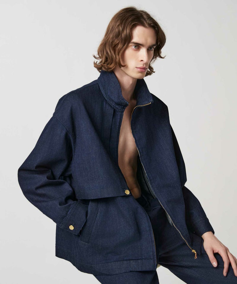 レイヤードディーテールがCULLNIらしいスタンド型のジップアップジャケット。身頃のゴールドボタンや華奢なジップ使いがデザインポイントになっています。
