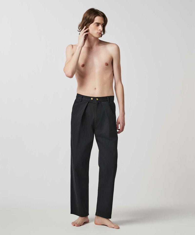 太すぎず、細すぎずの絶妙なラインに仕上げた大人に向けたセミワイドパンツ。ウエストのタック分量を多くとり、裾にかけてややテーパードをかけることによって、絶妙なセミワイドシルエットに仕上がっています。