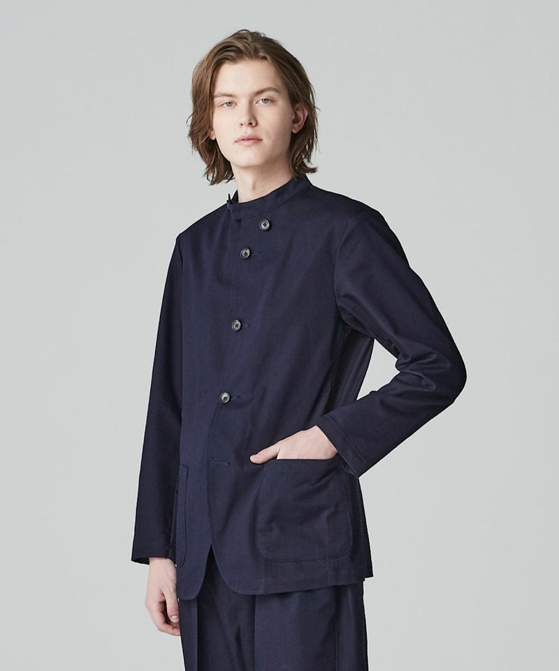 オフィサーカラージャケットは、ボタンの止める位置によって、シャツジャケットやテーラードと様々な着用が可能。日常的な着用はもちろん、同生地で作成されるボトムスとのセットアップスタイルによりドレスアップまで様々なシチュエーションに対応できる。