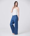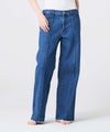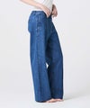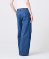 【デザイン】 上品さにこだわって仕立てたデニムパンツ。5ポケットではなくトラウザー仕様を採用し、フロントにピンタックを施すことで脚がまっすぐ美しく見えるデザインに仕上げています。ハイライズではなくミドルライズにすることで、幅広い年代のお客様にフィットしやすいバランスに。シルエットは太すぎず細すぎない絶妙なラインで、上品さと穿きやすさを兼ね備えた一本です。