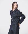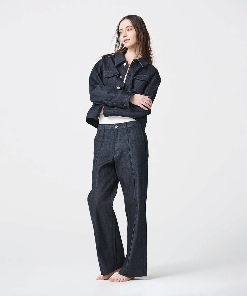 【デザイン】 上品さにこだわって仕立てたデニムジャケット。トレンド感のあるクロップド丈で、さまざまなボトムスとバランスよくスタイリングできる一着です。ボタンにはミニマルなシルバーパーツを採用し、カジュアルさを抑えた洗練された印象に仕上げています。