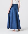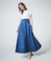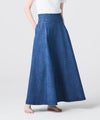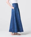 【デザイン】 上品さにこだわって仕立てたデニムスカート。生地を贅沢に使用することで、美しく広がるフレアシルエットを実現しています。太めのウエストベルトが全体のバランスを引き締め、スタイルアップも叶える一着です。