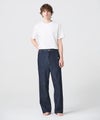 【デザイン】緩やかにテーパードを効かせた、洗練されたストレートシルエット。太すぎず細すぎない絶妙なラインで、脚をまっすぐきれいに見せるバランスに仕上げています。ウエストは後ろ部分のみにゴムを内蔵。フロントはすっきりとした見た目を保ちながら、サイズの可動域を確保しています。着席時や長時間の着用でもストレスを感じにくい設計です。左ポケットはダブルポケット仕様。機能性を高めながら、さりげないデザインアクセントとしても成立しています。アイコンとなるゴールドのタックボタンやリベットが、デニム全体の印象を引き締め、上品さをプラス。カジュアルに寄りすぎない大人の表情を演出します。現在展開中の1タック・セミワイドモデルに対し、こちらはノータックのストレート。シルエットに明確な違いを持たせているため、よりすっきり穿きたい方や、ジャケットスタイルに合わせたい方におすすめです。好みに合わせて選べるのも魅力のひとつです。