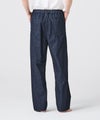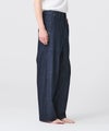 【素材】生地には、展開中のブルゾンおよびパンツと同じ10.5ozデニムを使用。厚すぎず薄すぎない絶妙なウェイトで、立体感を保ちながらも、着心地は軽やかです。インディゴは坂本デニムによるエコ染色。環境負荷を抑えながらも、透明感と深みのある色味を実現しています。