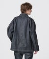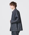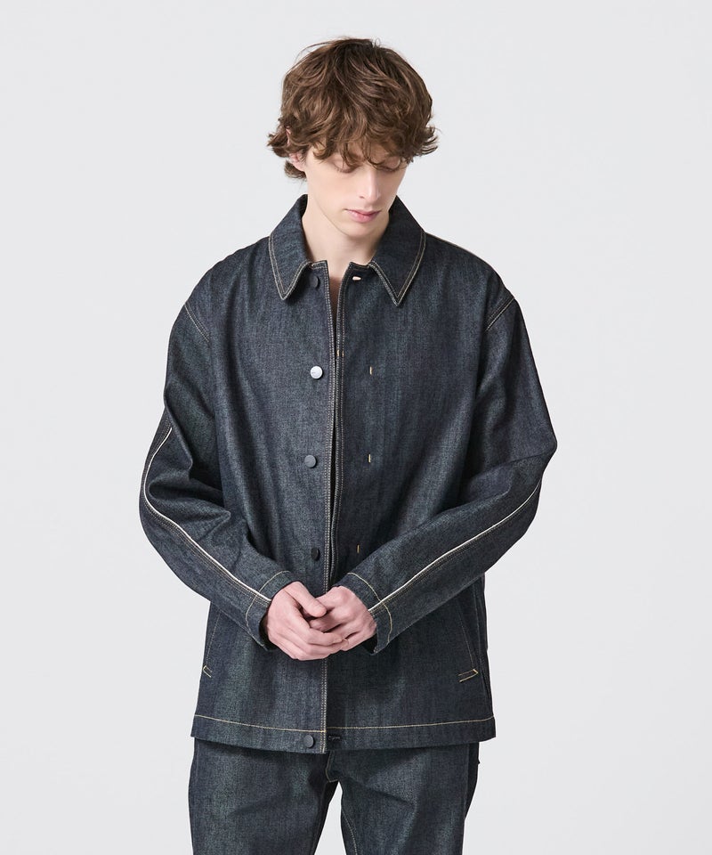 【デザイン】follow_DENIM COACH JACKETを、新生地でアップデート。コーチジャケットをベースに、着丈や袖付けのバランスを調整し、大きめのポケットや比翼仕立てのディテールを取り入れることで、カジュアルに寄りすぎないクリーンな表情に仕上げています。フロントはミニマルな印象を意識しつつ、ポケットの存在感で程よいアクセントをプラス。日常使いしやすい実用性も兼ね備えています。袖にはスプリットラグランスリーブを採用。後身頃は可動域を確保するラグラン仕様、前身頃は端正な見え方をつくるセットイン仕様とすることで、すっきりとしたルックスと動きやすさを両立しています。