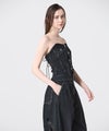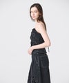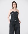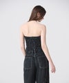 【デザイン】タナカ定番のデニムビスチェをベースに、ブランドならではの大胆なカットワーク刺繍を施したスペシャルモデル。バックはレースアップのディテールがこだわりの1枚。(サイズ調整不可)立体的に浮かび上がるようなカットワークは、唯一無二な存在感を発揮しています。刺繍の最後の仕上げは職人の手作業で行うという徹底ぶりで、時間と技術が注ぎ込まれた逸品です。シンプルなアイテムを合わせるだけで主役になる一本。シャツなどと合わせれば、モードかつ洗練されたスタイルが完成します。