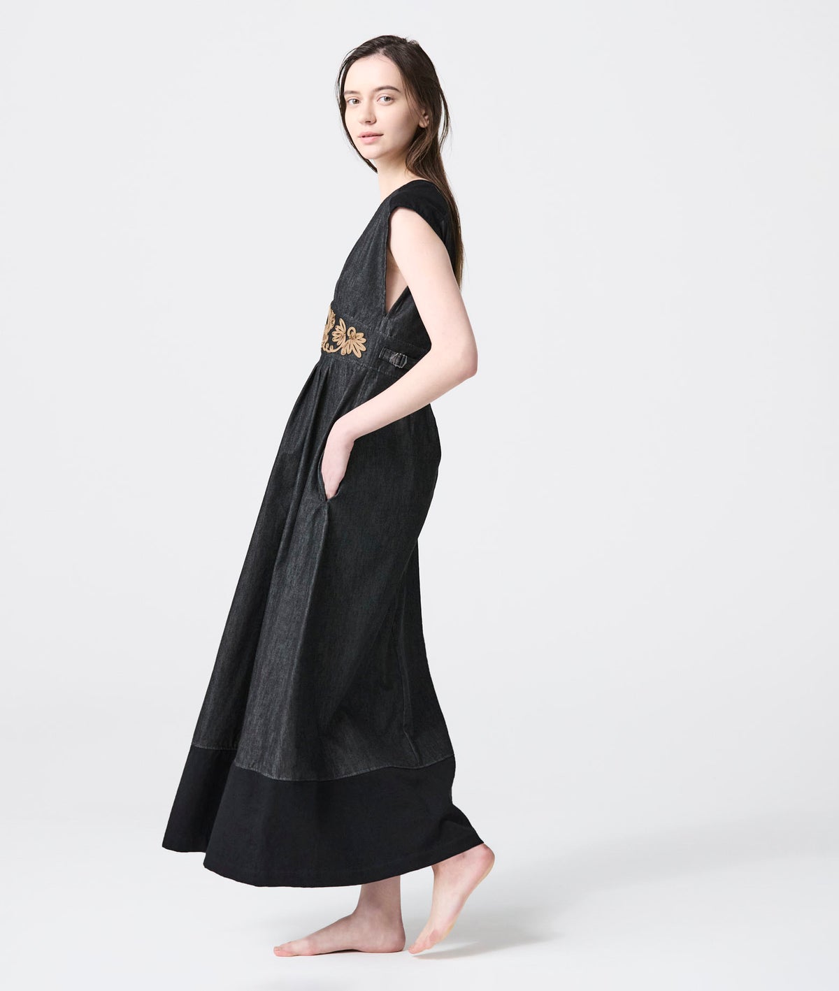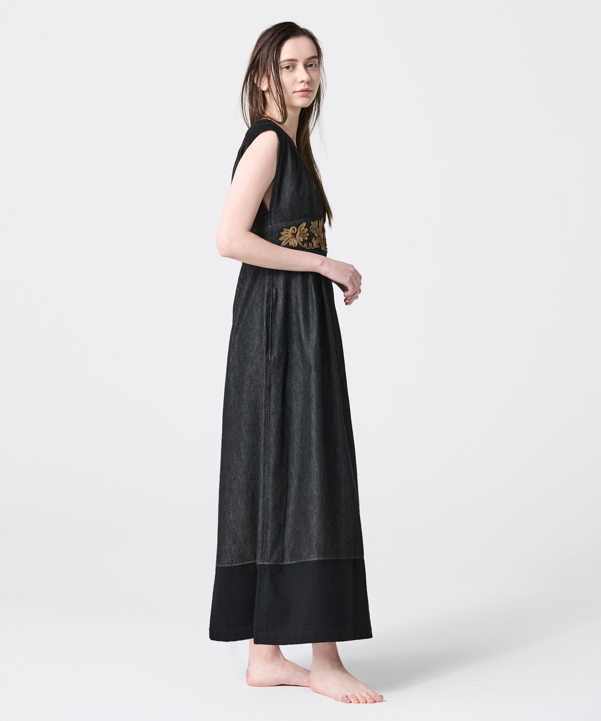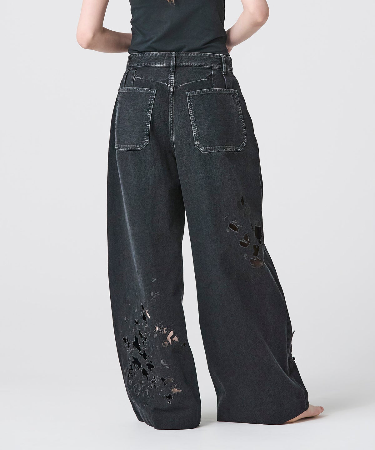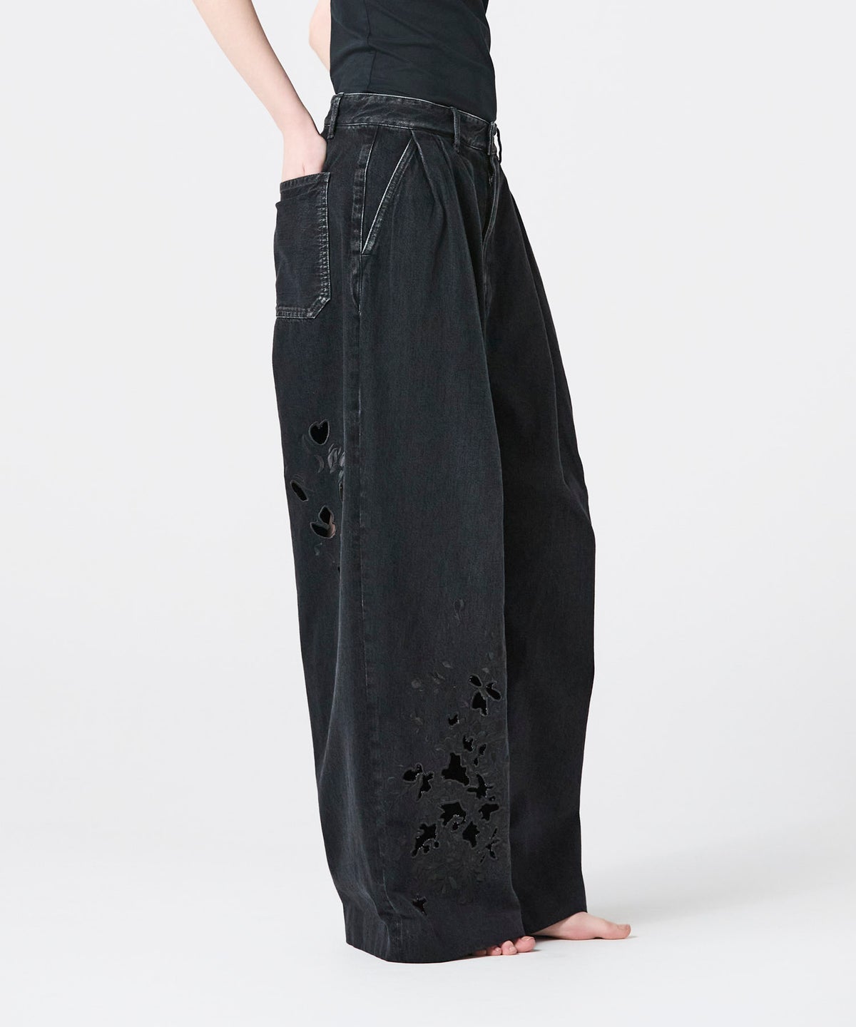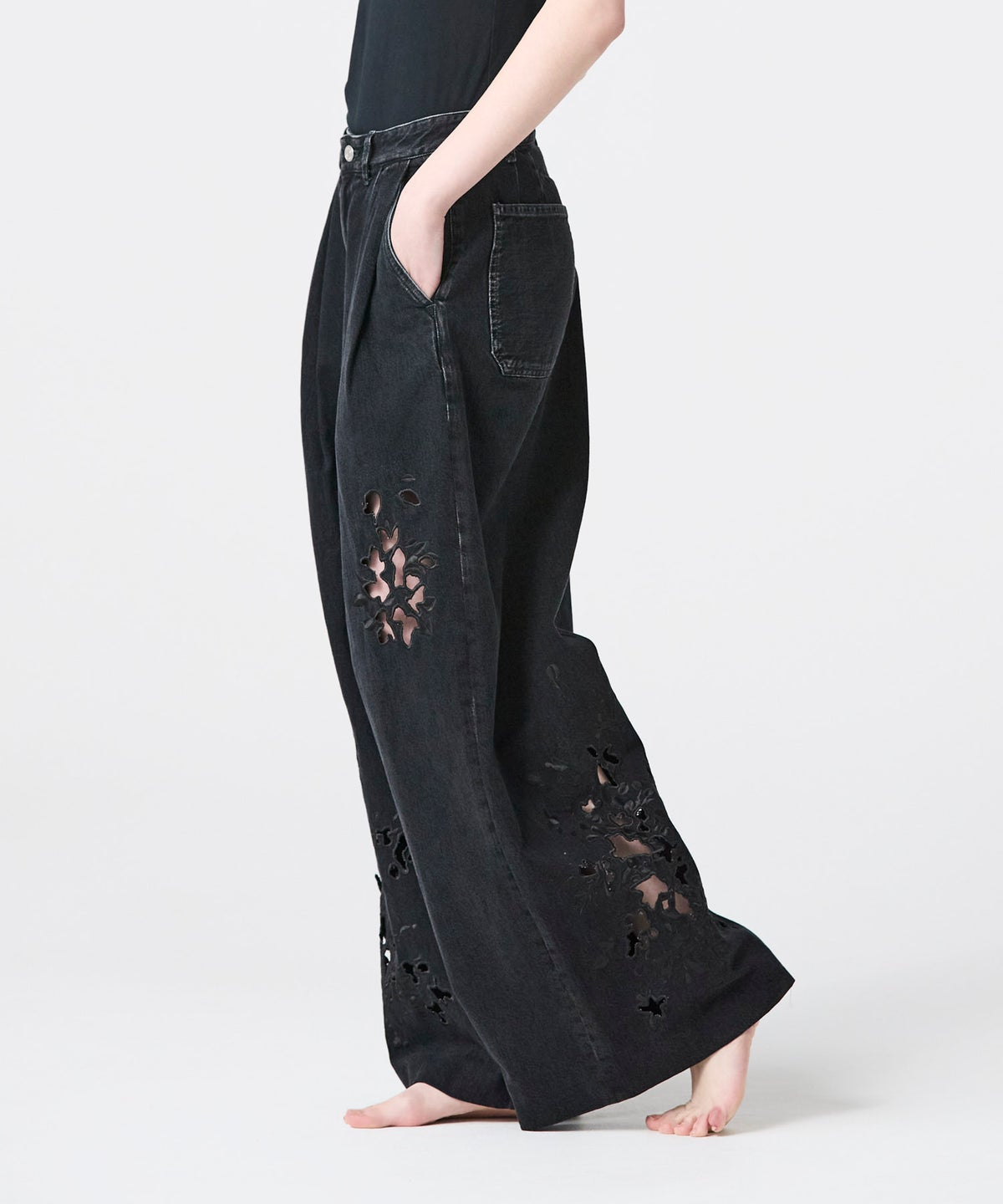 TANAKA FLOWER EMBROIDERY DENIM TROUSERS