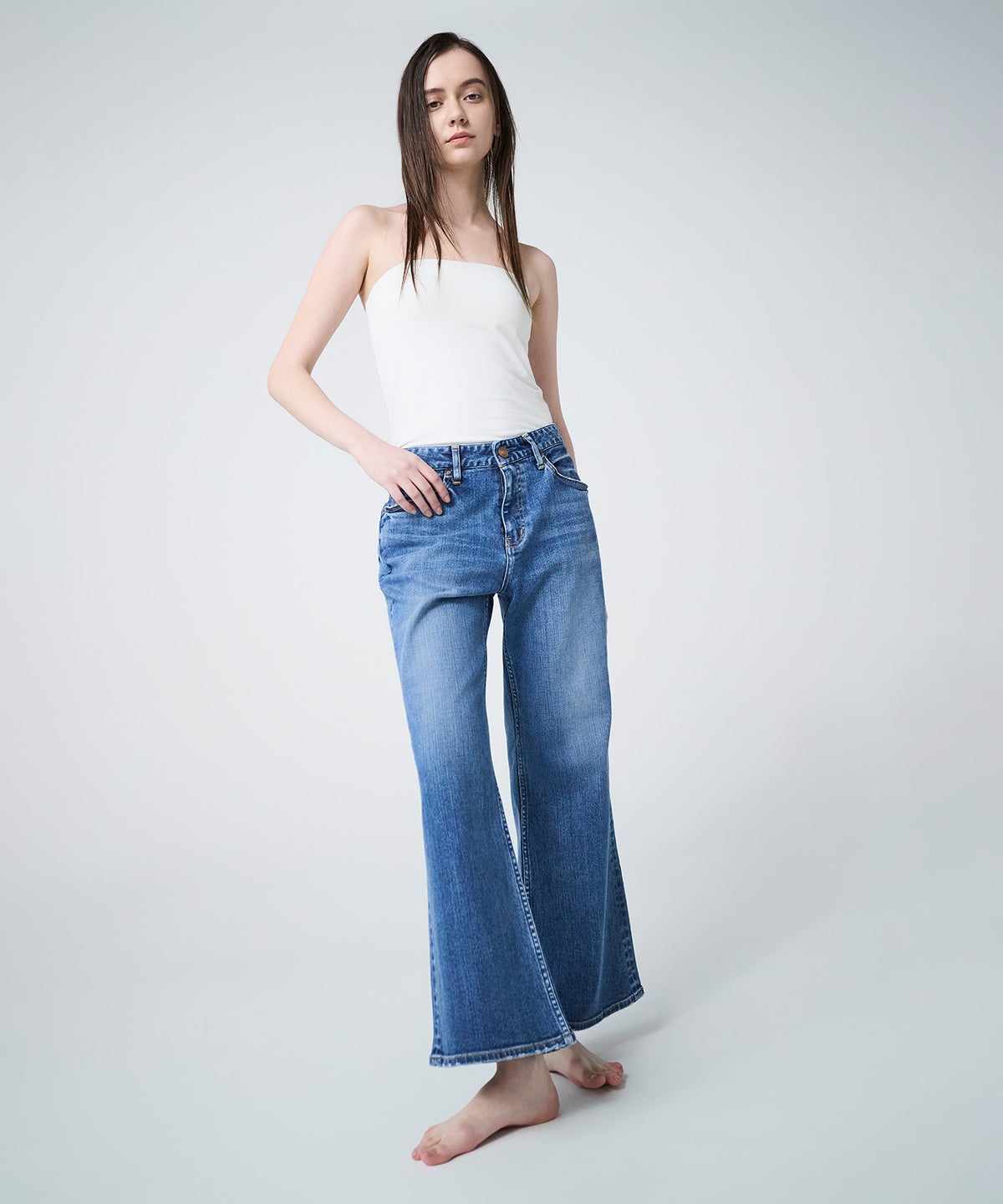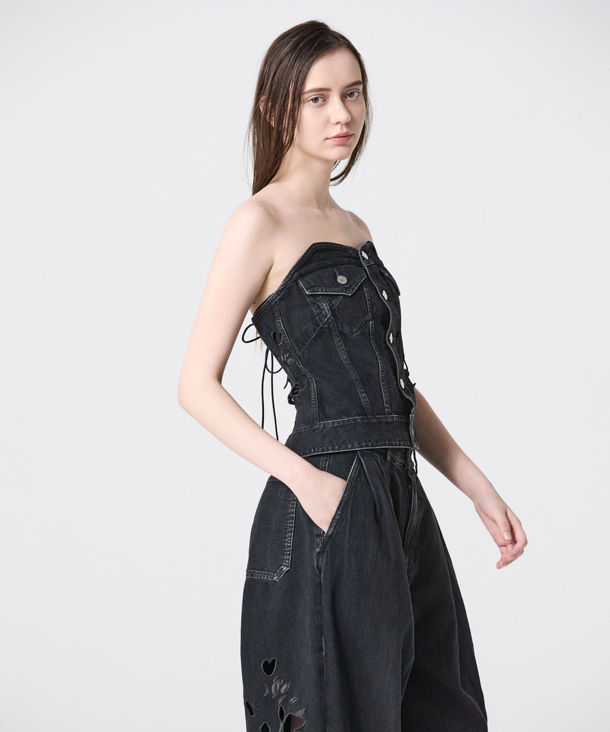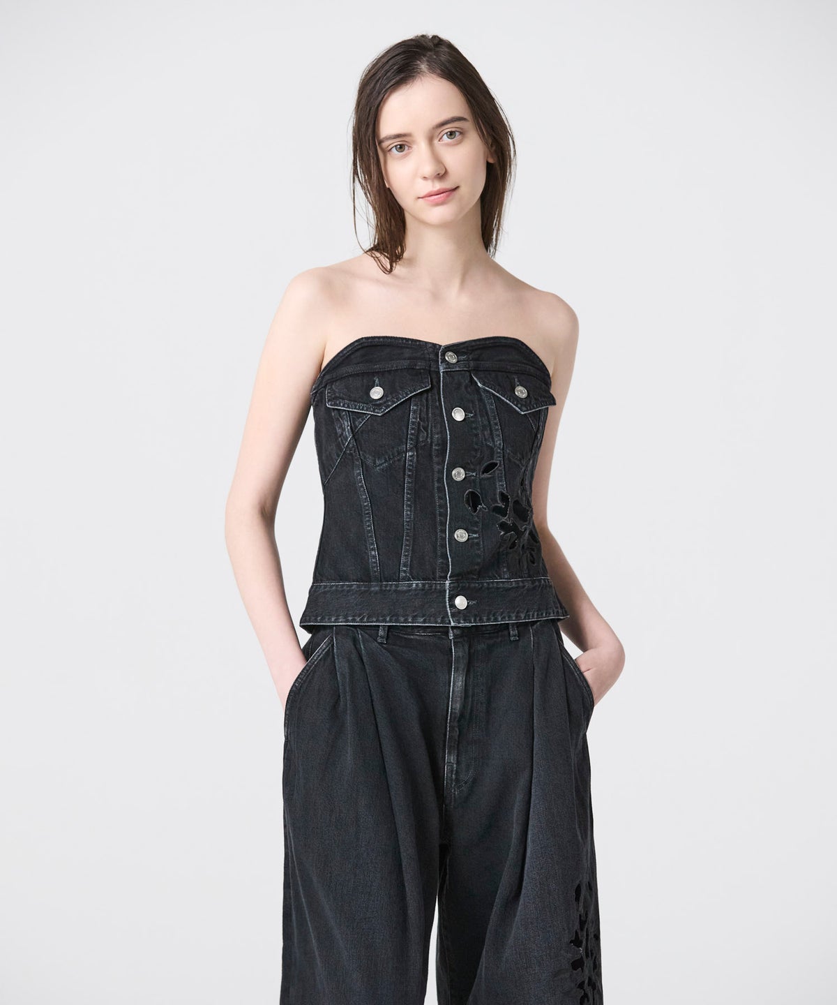 TANAKA FLOWER EMBROIDERY DENIM BUSTIER