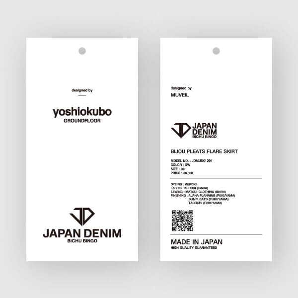 各製品には産地事業者を明示したラベル下げ札を取り付け、QRコードも印字。 どの事業者が関わっているのか明示・可視化することにより、生産地名や事業者名を消費者・アパレル関係者へ広めていきます。 デニム関連事業者が参画デザイナー・ブランド以外の企業と出会うチャンスを増やし、新たな商機に繋げていきます。